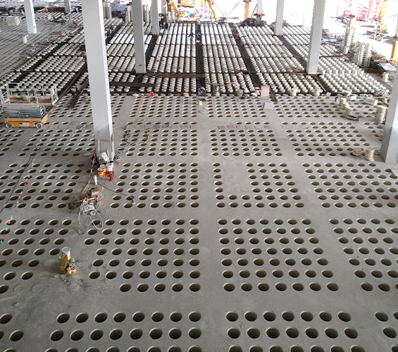 梯形華夫板的生產(chǎn)工藝具有以下顯著優(yōu)勢:1.結(jié)構(gòu)性能梯形華夫板的幾何設(shè)計(jì)通過縱橫交錯(cuò)的肋梁和...